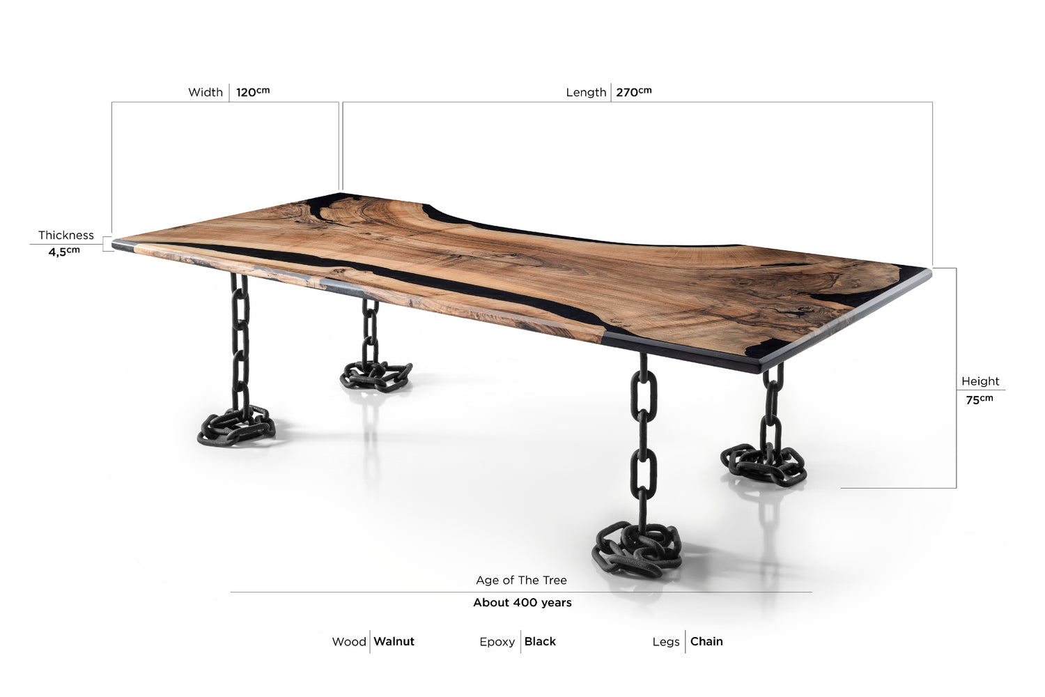 Width: 120cm x Length: 270cm x Thickness: 4.5cm x Height: 75cm